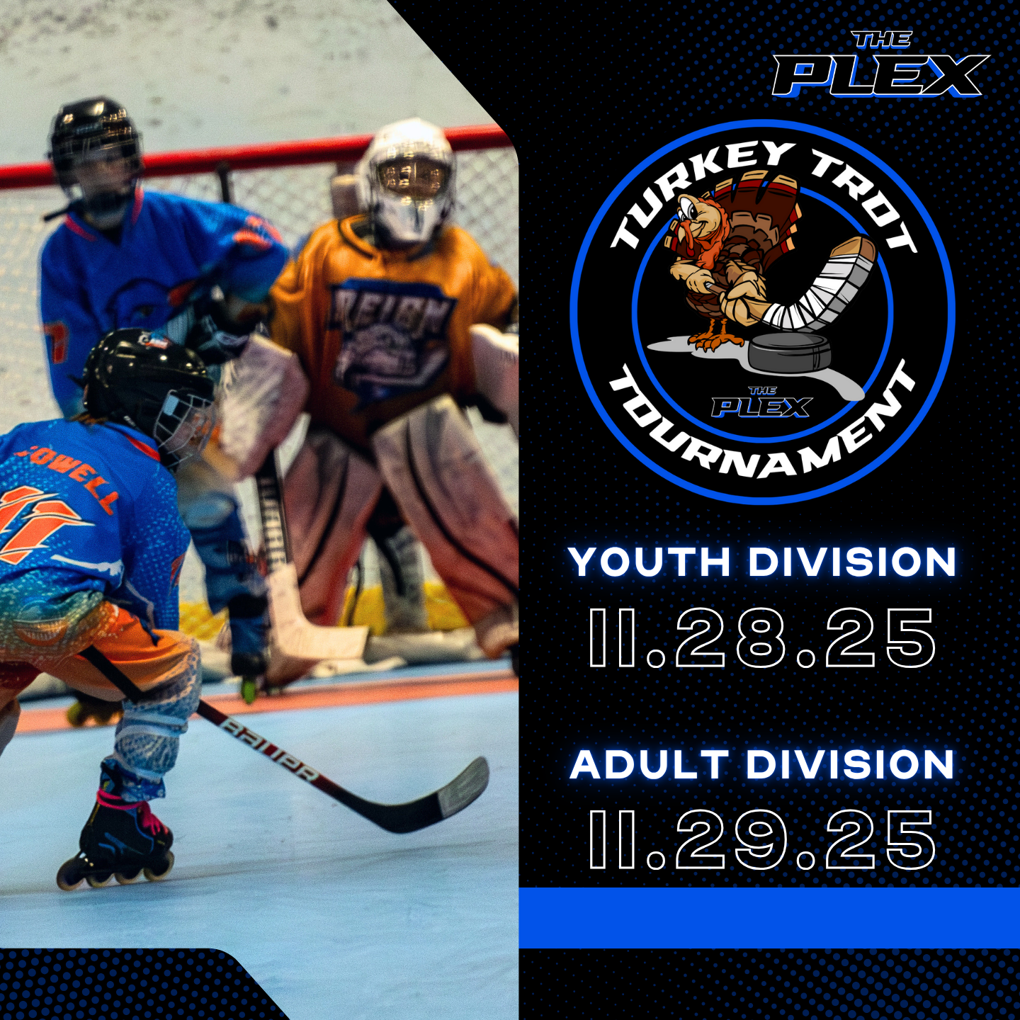 Get ready for high-energy competition at The Plex’s Turkey Trot Roller Hockey Tournament – Adult Divisions! Saturday features the Gold and Silver divisions battling it out on the rink for bragging rights and holiday glory. Click to register! Gold Division! Silver Division!